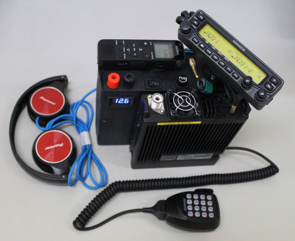 - Accessories: Home-brewed straight key, home-brewed electronic iambic keyer with Uni-Ham paddles, home-brewed desktop microphone using a Sony PX470 voice recorder, home-brewed TNC for APRS operation, Tokyo Hy-Power VHF/UHF amplifier with RX preamp, Air-Spy mini SDR with Air-Spy HF upverter and NooElec LNA