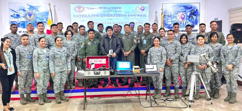 I have conducted a workshop on satellite communications on 30 April 2024 attended by thirty-five personnel from the 900th Air Force Weather Group at Villamor Air Base in Pasay City. Practical applications of satellite communications were discussed such as using satellites for emergency communications and downloading live images from weather satellites. Towards the end of the session, participants were introduced to the radio equipment, antenna, and automated tracking systems used in amateur radio satellite communications.